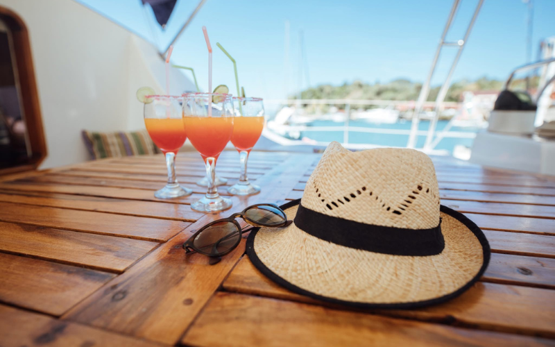 Cocktails et repas tropical à bord pour profiter pleinement de cette journée bercée par les vagues et le vent.