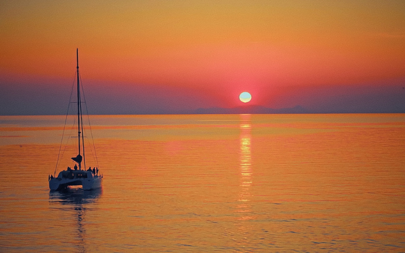 Vivez un instant hors du temps : admirer le coucher de soleil en mer, seuls face à l’horizon.
